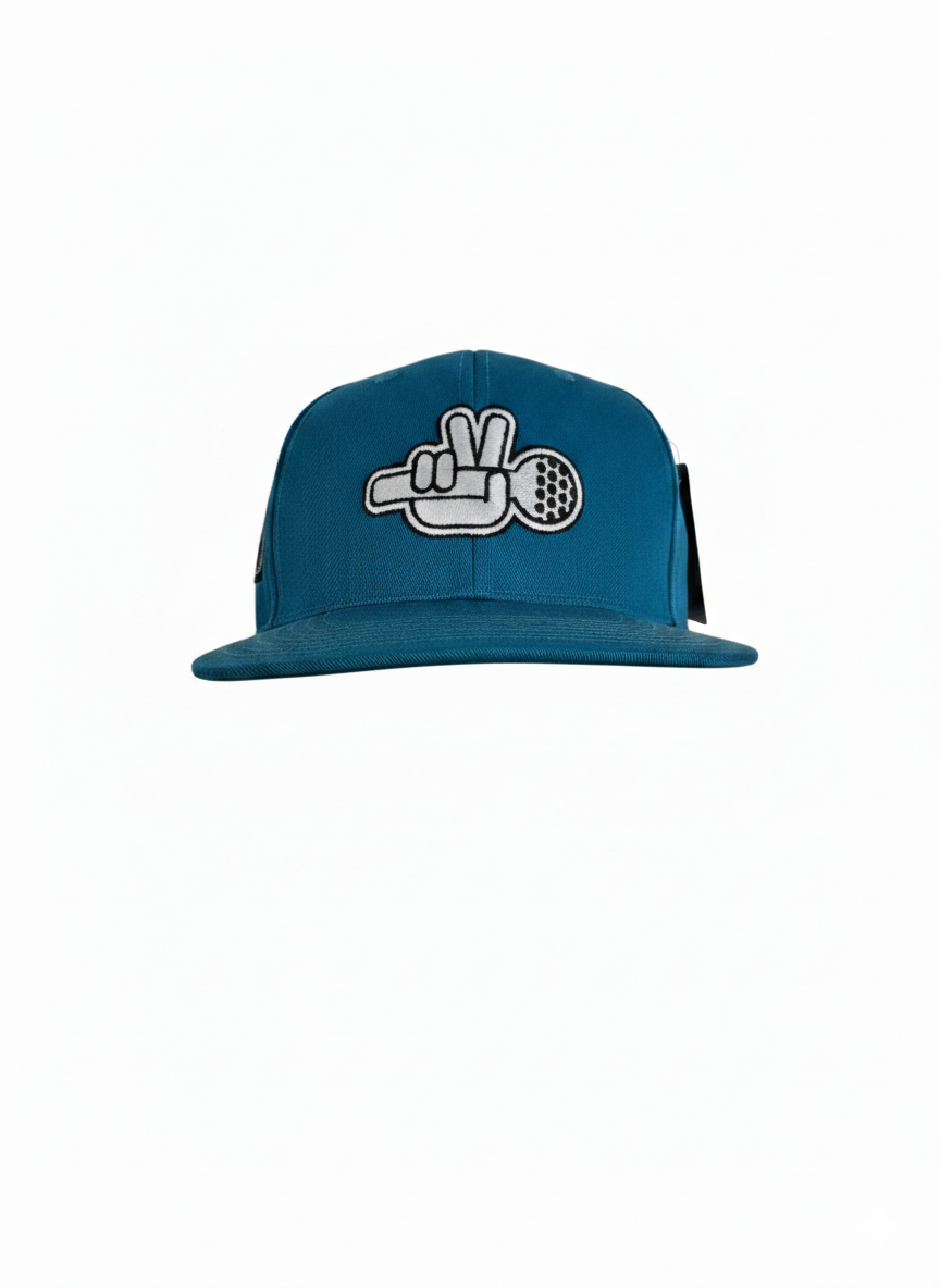 Lækker Per V logo snapback cap i blå med brodering og patch.