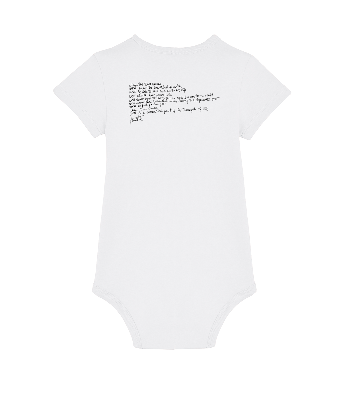 Babybody med fredssymbol og The Savage Rose trykt på front.